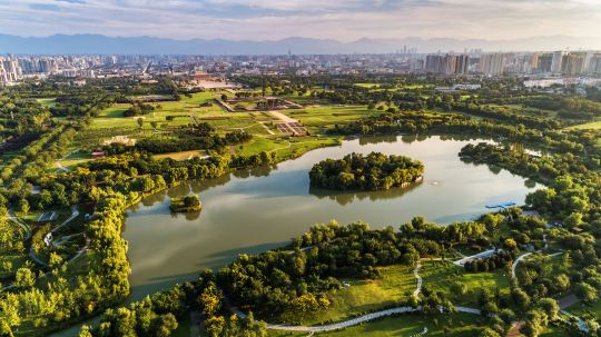 唐代的大明宫是长安城中辉煌壮丽的建筑群。公园建在大明宫的遗址上,这里有含元殿等宫殿的台基、墩台遗址;能欣赏到复原的大明宫微缩景观。